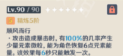 同样是为了弥补大招充能,西风的被动CD会比祭礼短(6秒,满精)但是有暴击率要求,个人推荐30暴击率及以上(稳定触发得50以上,但不建议为了追求稳定触发换暴击头,当然如果没有精通头也可以带暴击头)。