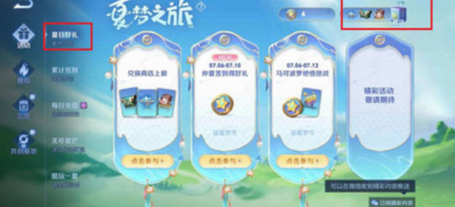 2:在游戏的主界面中,我们就可以能看到夏日好礼的活动了,同时我们进入夏日好礼活动页面中,在右上角商店中就可以进入夏日商店了;