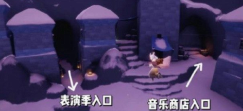 1、玩家进入表演季地图后,在舞台正对的方向右侧有一条挂着音乐牌子的巷子;