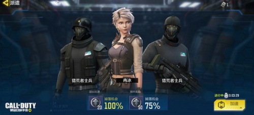 3、选择物资点之后,可以进入派遣界面。在派遣界面中,战士们可以选择3名已解锁的角色进行派遣。不同的角色,进入不同物资点的成功率不同。当三名角色的累计成功率超过100%时,有机会获得额外的奉献点奖励。