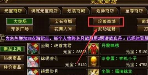 点击进入【珍兽商城】,
