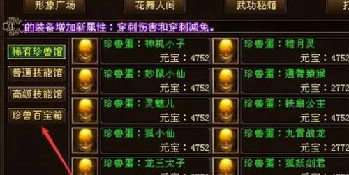 再点击左侧【珍兽百宝箱】,