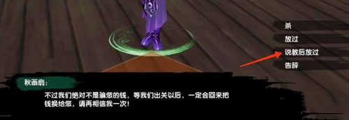5、第九天上线后去太原找到秋画扇对话,等待剧情结束继续跟秋画扇对话,选择放过她。
