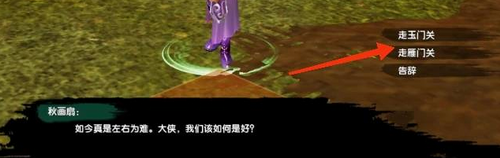 6、继续进入剧情,等剧情结束何柒柒走后,继续跟秋画扇对话到出现选项,选择了雁门关。