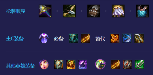 猛兽之巢看到必拿,忏悔起到很好的控制效果、换形师之心可以不要6玉龙开出6换形,其余通用类战斗海克斯均可