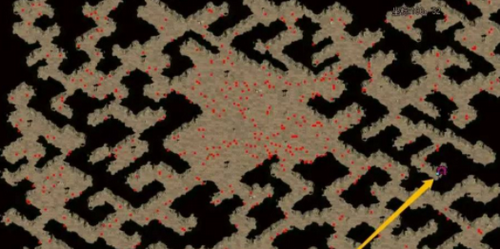 进入洞穴后,到达绝命谷1层,如图走到中间左边的洞穴进入