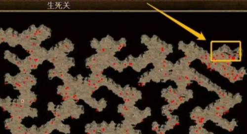 绝命谷第5层叫生死关,触龙神就在该地图的右上角坑洼处