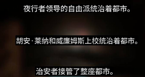 4、无线电控制权:无线电的控制权会决定最终谁能够接管城市,分配给弗兰克——夜行者领导的自由派统治都市,分配给胡安——胡安和上校统治都市,分配给马特——治安者接管城市。
