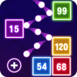 2、游戏玩法:按住屏幕,选择瞄准路线,计算反弹路线,放手发射弹球,力求让圆球在方块之间尽可能多的反弹,尽快的消除掉屏幕中出现的方块~
