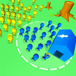 这是一款趣味性超强的休闲竞技小游戏。在游戏中,你扮演一方营地工程师,在地面趟板板的紫色砖块是材料,收集材料叠叠高到无法承受重力后,回营地建造,召集更多士兵战斗,并且不断壮大你的队伍。再不断收集弹药把中央炮车填满,中央炮车成为我们战力后,会为你赢得80%的胜率;这时,你只需要将敌人引入圈圈,剩下就是坐等王者称号的到来。
