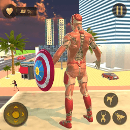 角色左手拿着一个圆形盾牌,右手可以用拳头和腿来攻击城市的敌人。