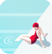 《Swim Out》画面清新,背景以泳池为主,配色则多见天蓝、白、淡黄等清淡色系,烘托出舒心清凉的视觉体验。玩家在游戏中要控制一个想要抵达泳池出口的游泳者,挑战在不触碰其他游泳者的前提下抵达出口的益智谜题。