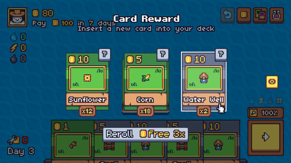 卡牌农场是一款融合农场经营与地牢探险的创新卡牌游戏。玩家通过策略性组合动物、作物和建筑卡牌,在随机生成的地牢农场中生产资源、积累财富。但要警惕资金链断裂——每次决策都关乎农场存亡!