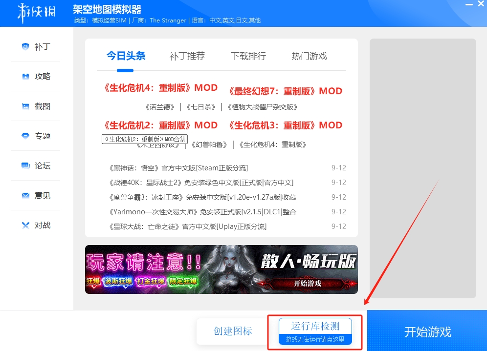 遇到无法运行启动、乃至闪退的情况大概率是必备运行库没有安装,可以通过开始游戏.exe中的运行库检测安装。