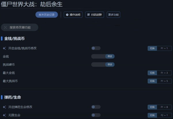 僵尸世界大战劫后余生修改器键位说明
