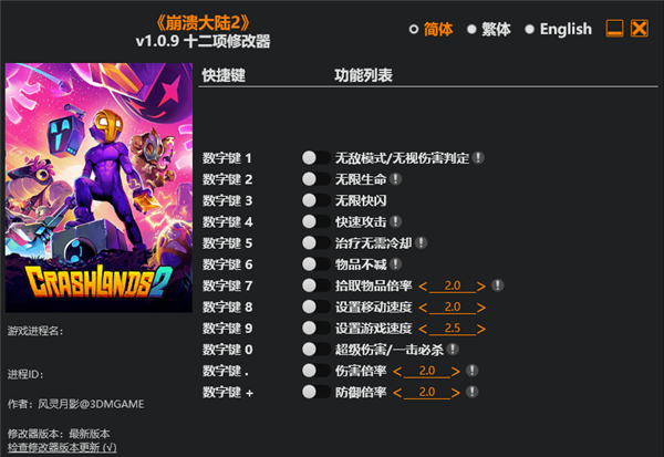 崩溃大陆2电脑版修改器是一款专门针对《崩溃大陆2》电脑游戏所推出的数值修改器,它内置十二项不同的修改功能,玩家可以拥有快速攻击、治疗无冷却、无限冲刺等设定,还可自由编辑移动速度、拾取物品倍率。无论是遇见资源匮乏、怪物难缠等难题,还是想体验爽快建造与战斗,崩溃大陆2修改器都能很好满足玩家的续需求,在沃诺普星球进行一场别样的大冒险。