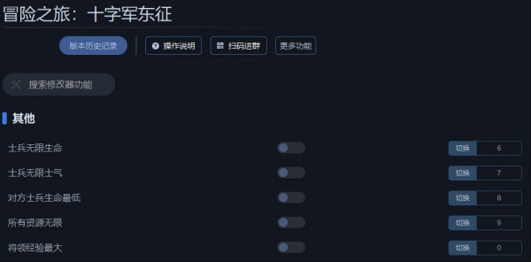 冒险之旅十字军东征修改器是针对即时战略游戏冒险之旅十字军东征打造的一款游戏辅助作弊工具软件。冒险之旅十字军东征修改器不但能够帮助你修改士兵无限生命、士兵无限士气、对方士兵生命最低等功能,还可以获得所有资源无限、将领经验最大,以大幅度减少玩家的游戏困难,给玩家带来更好的游戏体验。冒险之旅十字军东征修改器使用简单,玩家只需要登录游戏后再打开修改器,然后按下相对的热键即可快速开启,简单快捷高效,降低游戏难度,帮助玩家轻松解决战斗,从而让你获得更佳的用户体验