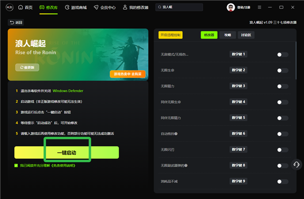 浪人崛起修改器启动指南