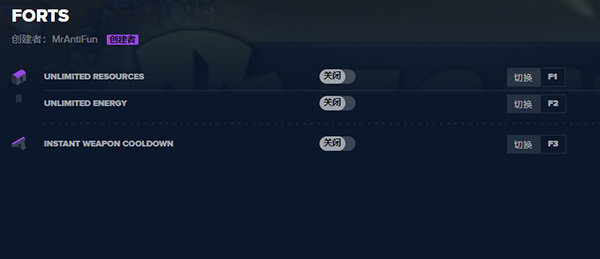 F1 > 无限资源F2 > 无限体力F3 > 武器立刻冷却进击要塞修改器使用教程