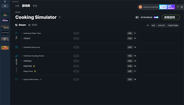 F1 > 无限订单时间F2 > 无限金钱F3 > 无限料理分数F4 > 无限技能点F5 > 超级订单分数F6 > 道具无限使用次数F7 > 海量经验F8 > 海量声誉使用方法