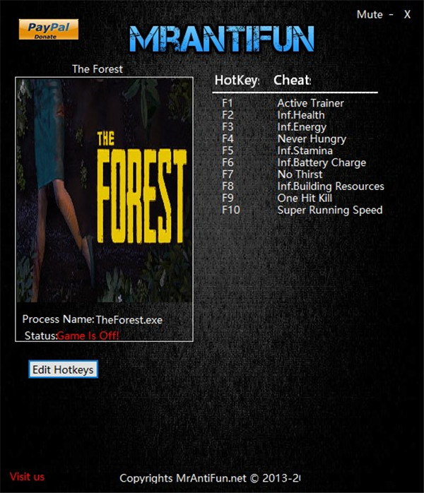 森林修改器是一款强大的森林游戏修改工具,具有无限生命、无限能量、无限体力、无限电池电量、不会饥饿、不会口渴等多种强大功能,可更好的帮助用户进行游戏的初期体验。森林是由加拿大独立游戏开发商Endnight Games打造的恐怖冒险类游戏,于2014年5月30日发行。游戏中玩家必须建造设施,探索世界,生存下去。玩家必须砍树建造营地,生火取暖,收集食物,甚至还可以种植农作物。玩家可以藏匿行踪躲避敌人,也可以用石块和木棒制作武器,与敌人正面交战。而玩家的敌人是一群野人和凶猛的怪兽,他们和正常人类一样,有着自己的家庭和道德观。