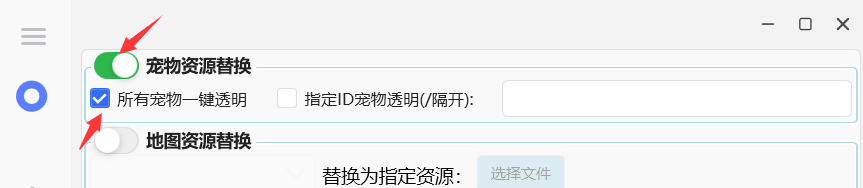 该功能的优先级低于所有宠物一键透明,想要指定宠物透明生效,需要 关闭所有宠物一键透明。