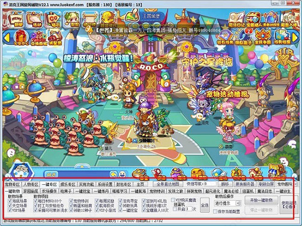 一键取物、一键清理垃圾、农场送玩具、一键农场操作、一键刷历练值、一键刷通天塔、一键挖宝、一键炼丹、一键呱呱学习、一键航海、一键宠物特训、一键发现之旅