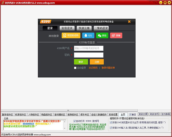 1、在本站下载解压,得到ucbug造梦西游3修改器无敌秒杀版后,双击运行"造梦西游3ucbug修改器"打开,点击开始,输入你的密码和账号;