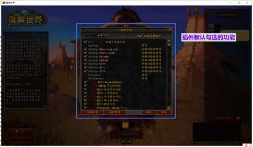 5、进入游戏后,在脚色列表中,看到显示有“插件”按键,就说明插件安装成功了;