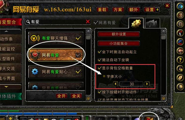 大部分插件都在小地图或esc侧边栏上有按钮,可以进行快捷设置。12、背包格数显示如何关闭、调整数字大小?见下图: