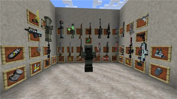 枪支:三维模型;反冲/重新加载动画;枪口闪光;第一人称和第三人称显示方式。盔甲:皮肤和3D模型;护甲奖励系统,可以提高采矿速度与移动速度。新的插槽:(与匠魂模组的构造兼容。如果安装了匠魂模组,它将集成到它的插槽中);面部插槽:戴上防毒面具之类的东西;背部插槽:滑翔机和喷气背包;放置弹药的新插槽;自动食物插槽:会自动食用放在这里的食物。伤害系统:针对不同类型的伤害,有不同的护甲值。NPC:新的敌对NPC也使用枪支;可以使用火炮的炮塔。死亡影响:增加了残忍的动画,如流血与溶解,默认禁用。机器:增加了制作所有新材料所需的新机器,比如金属冲压机、弹药压制机、化学实验设备、迷彩工作台等,用来修理装备或者优化武器,给武器换涂装等。配置:配置怪物生成速率;配置是否应添加普通矿石(铅、铜、钢等)(默认情况下禁用);配置矿石钻机功率和矿石速率,默认速率(1.0)等等;配置是否启用死亡效果。