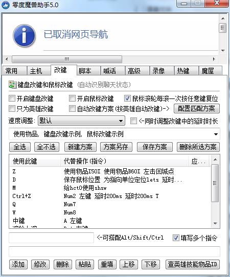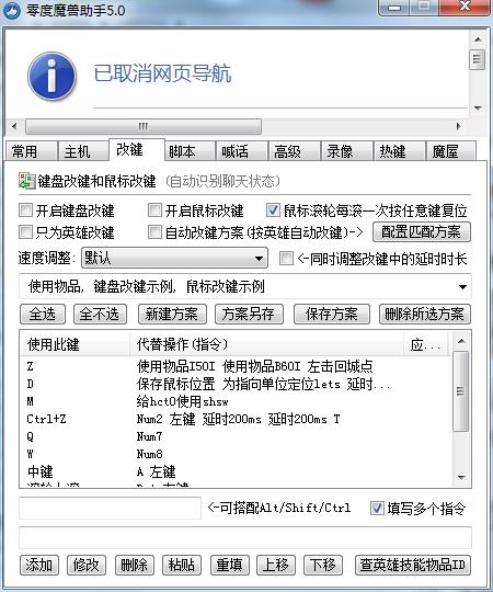 3、改键支持一键改变游戏中按键功能,如使用Z键,可使用物品、使用D键,可保存鼠标位置等,并支持技能改建