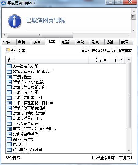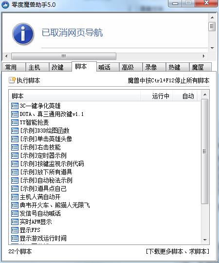 零度魔兽助手5.0是一款简单易用的魔兽争霸辅助工具,支持一键创建局域网游戏房间、一键改变游戏中的按键、一键使用多种脚本、一键自动喊话等多种强大的辅助,可让用户更加有趣的进行游戏过程。同时零度魔兽助手5.0还支持多种模式的窗口化设置,并且可以记忆您的窗口化设置,以便在下次启动魔兽时自动为您窗口化,可以选择屏蔽Win、Alt+TAB、Alt+Q、Alt+S、Alt+A、PrintScreen等烦人键,支持屏蔽小地图区右击操作,防止被追杀时不小心点错回头被杀的郁闷,支持键盘和鼠标改键,支持一键改多键、多键改多键、支持AI智能改键,喊话支持一键发送多行内容等等功能。有需要的玩家可以下载体验!