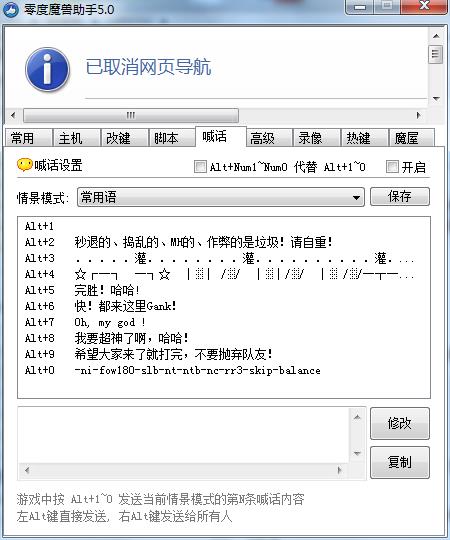 5、其他的功能,如一键喊话、一键录像等等,用户可根据自己的需要进行选择零度魔兽助手5.0绿色版辅助功能
