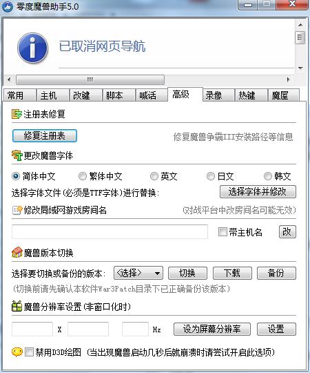 6、高级功能支持一键修复注册表、更改魔兽字体、魔兽版本切换等