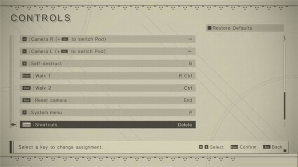 2、PC版基本键位WASD键:移动(双击躲避);R键:自动奔跑;空格键:跳跃;E键:行动;鼠标左键或/键:轻击;鼠标右键或键:重击;Q键:切换自动控制;shift键:发射;1键:Pod程序;2键:开启或关闭电筒;移动鼠标或十字键:控制镜头;Ctrl键:切换慢行;end键:重置镜头;ECS键或P键:系统菜单;delete键:快捷栏;