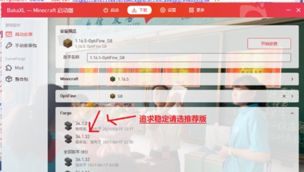 2、选择适合的forge版本