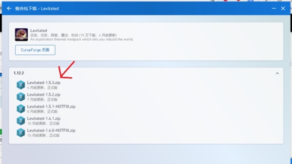 找到自己喜欢的MOD之后,点击进入,然后选择自己要下载的版本怎么加整合包