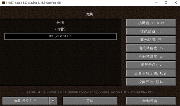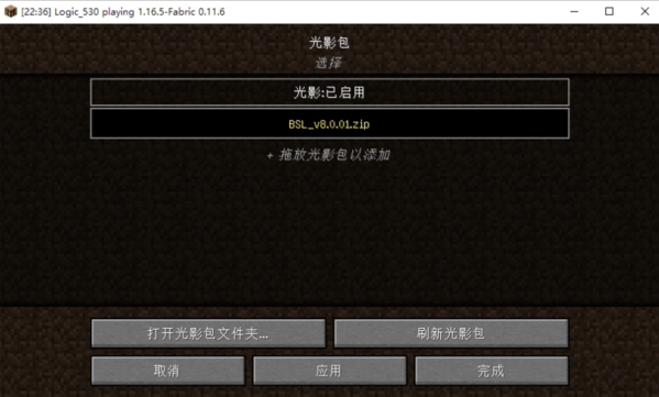 4、我们点击要使用的光影包,然后光影就会启用
