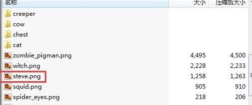 5、然后把里面steve.ping的图片删掉,再把你找到的皮肤图片命名为steve.png并且装入那里。进入单人就可以显示了,不是正版版本较高的服务器将会不显示。怎么限制登录