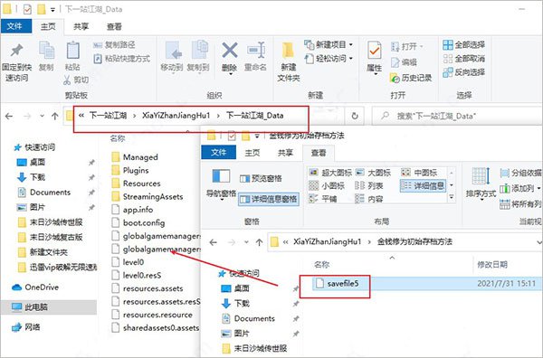 2、接下来将其复制到指定目录下:stream版的路径Steam所在目录steamappscommonXiaYiZhanJiangHu1XiaYiZhanJiangHu1下一站江湖_Data离线版的路径c盘/用户/当前用户账号目录/appdata/locallow/digua/下一站江湖/savefile