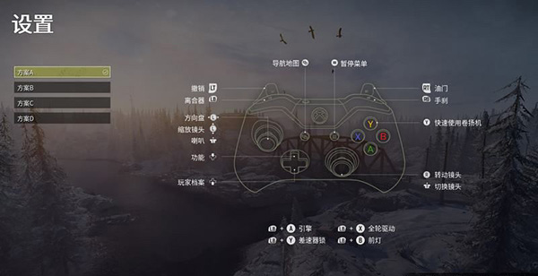 键盘按键:上下左右:WSAD 喇叭:G前灯:L全轮驱动:E差速器锁:Q手刹:space引擎:B快速使用卷扬机:F