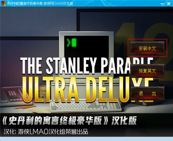 史丹利的寓言终极豪华版汉化补丁是适用于同名游戏史丹利的寓言终极豪华版的一款汉化补丁,这款补丁不仅能够将游戏的主菜单、游戏设置页面、剧情页面等多处进行全面的汉化,而且还只需一点即可轻松切换中英文,从而大幅度的提高游戏体验性。同时本补丁的使用方法也是非常之简单,玩家只需游戏目录当中运行汉化补丁文件然后等待片刻即可完成汉化,此外为了让小伙伴们更好地知道如何使用这款中文补丁小编还在下文带来了非常详细的图文教程亲测可用,有需要这款补丁的小伙伴们欢迎前来本站免费下载使用。史丹利的寓言终极豪华版英文也被称为The Stanley Parable: Ultra Deluxe,此版本不仅继承了原版的所有内容,并且还将游戏内大部分素材都进行高清化了处理,同时还扩展和增加更多新的游戏内容等待着玩家们去发现与游玩。