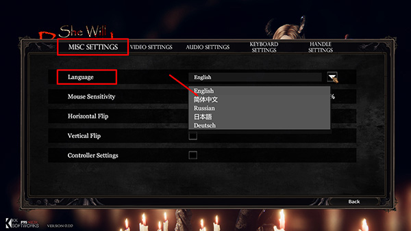 3、依次选择misc settings,language,简体中文,然后保存游戏,