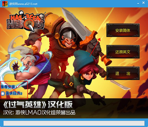 过气英雄汉化补丁是专门为同名《过气英雄(Has-Been Heroes》游戏制作的一个汉化补丁程序,并该汉化包是由LMAO汉化组制作分享的,使用它只需要将其复制到游戏根目录下,接着双击运行点击安装简体即可,然后启动游戏即可获得汉化后的中文版本游戏,十分简单易用。同时,通过过气英雄汉化补丁可以很好的帮助玩家们汉化游戏中的菜单、按键、主剧情等多处,小编亲测有效,从而让国内玩家可以拥有更好的游戏体验。过气英雄采用全新的剧情和玩法,以完成国王任务为主线,提供30多个角色选择,并有大量roguelike随机冒险元素,带领玩家开启新的冒险征程,十分有趣,因此不妨再配合本站的汉化来进行体验。