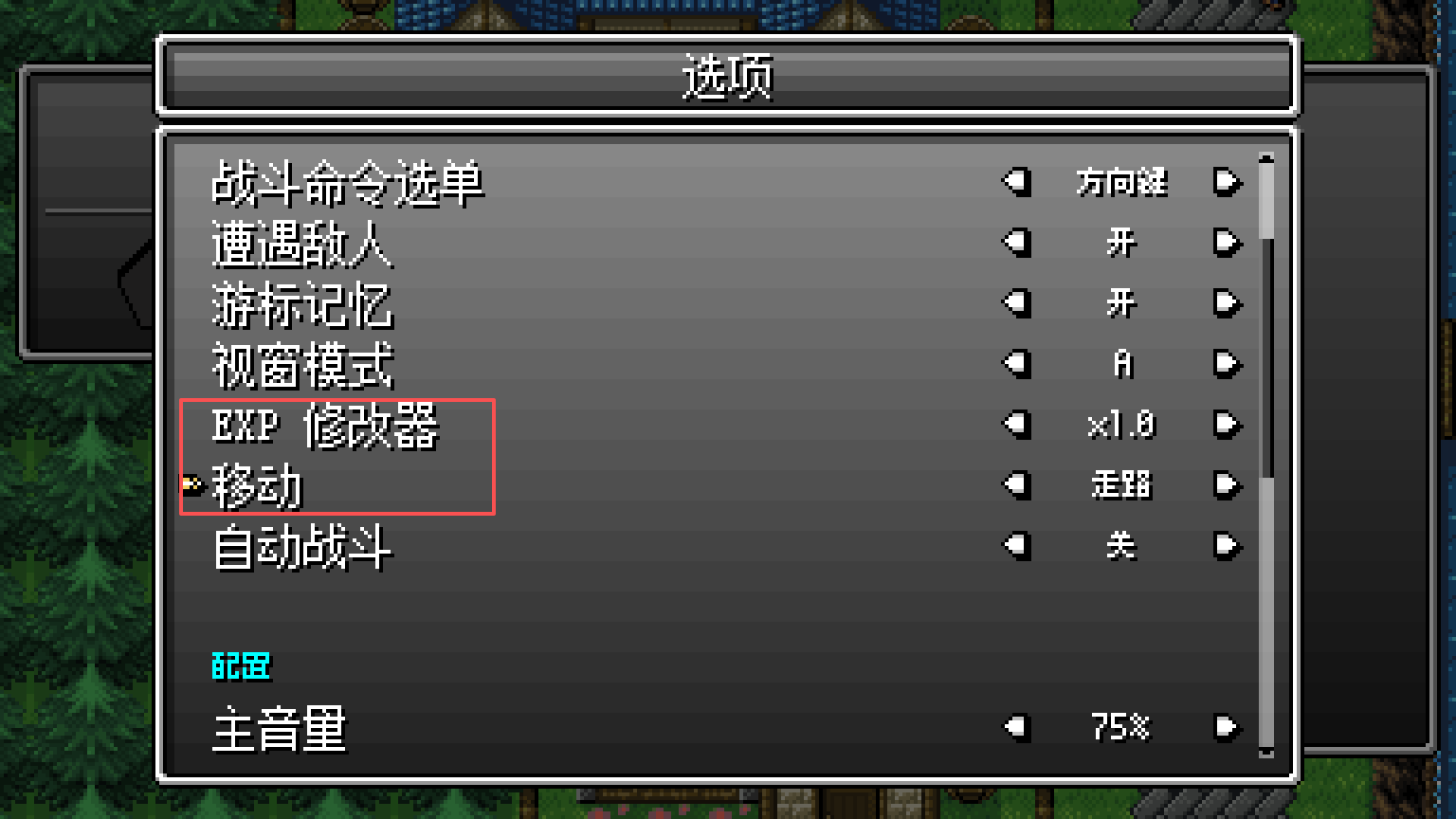 8、可以看到两项设置,“移动”方式可以更改为奔跑,可以获得更快的移动速度,“EXP修改器”需要慎重使用,需要玩家自行均衡“游戏爽感”和“游戏乐趣”这两部分的占比。