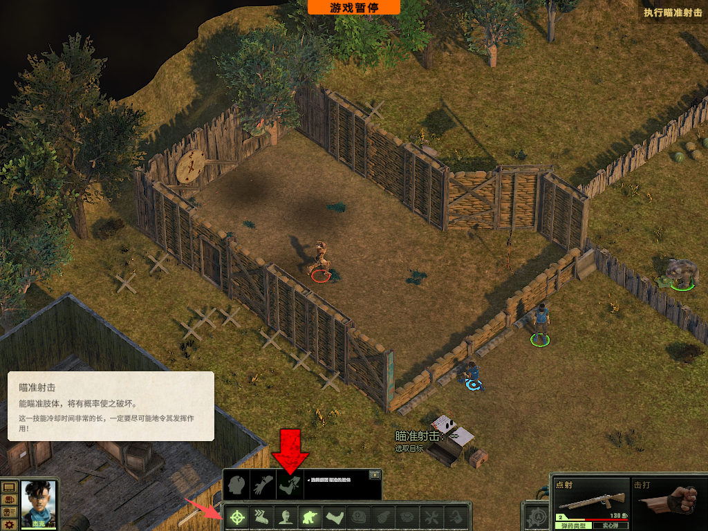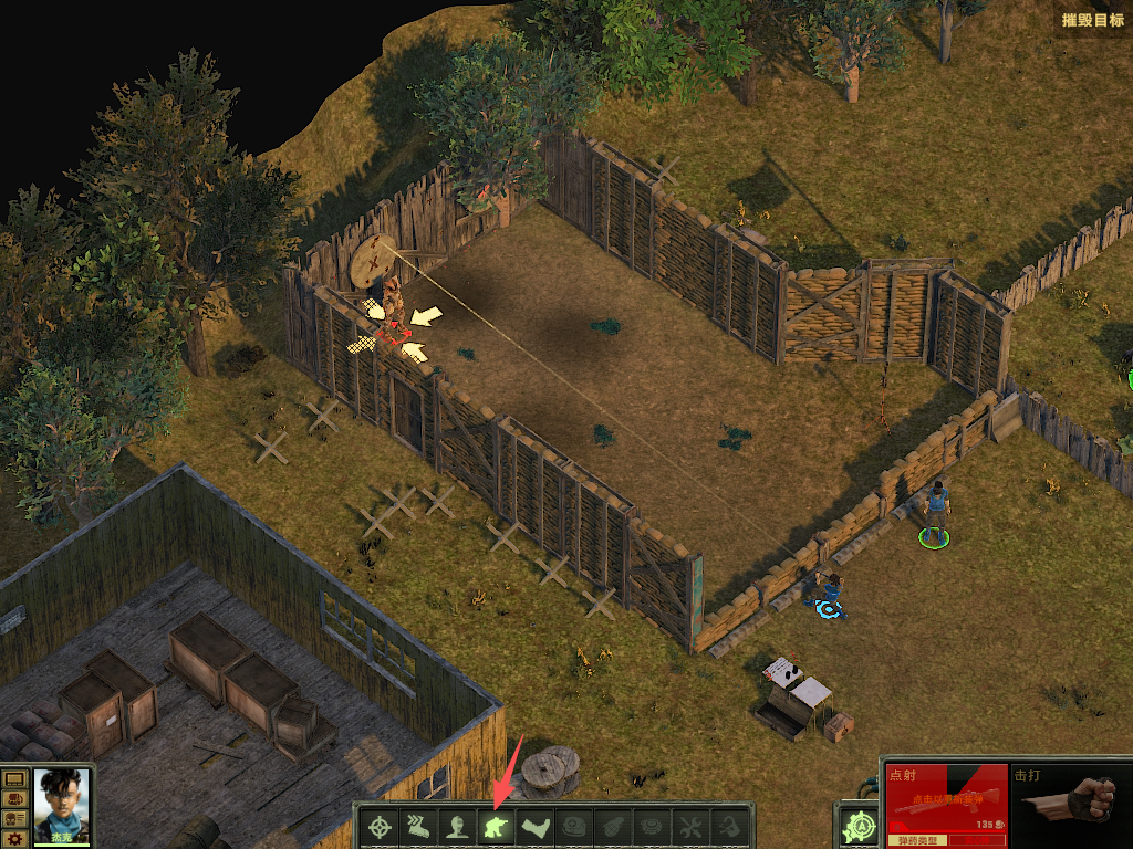 4、将鼠标放置目标身上可以看到命中率,鼠标左键射击,屏幕游戏右下角点击“靶子”标识,可以自动射击,可能会射击队友,所以需要密集场景慎用。