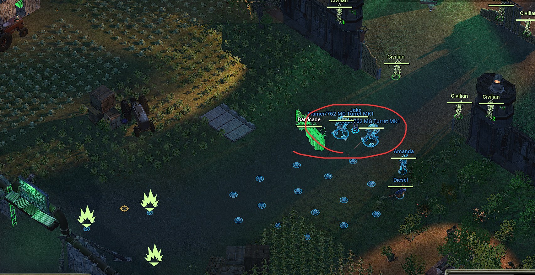 所以基本上,你的炮塔会吸收所有来自敌方的伤害,Amanda用.50cal步枪在敌方狙击手和机枪兵接近前解决他们。如果Amanda难以搞定狙击手,你还能手动用C4直接送他们上天。地雷和Diesel投掷的手雷也能帮你解决那些特别走运的敌人。