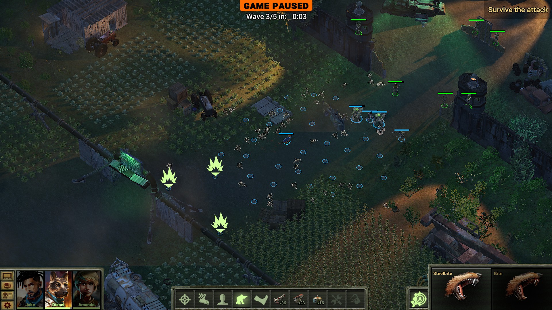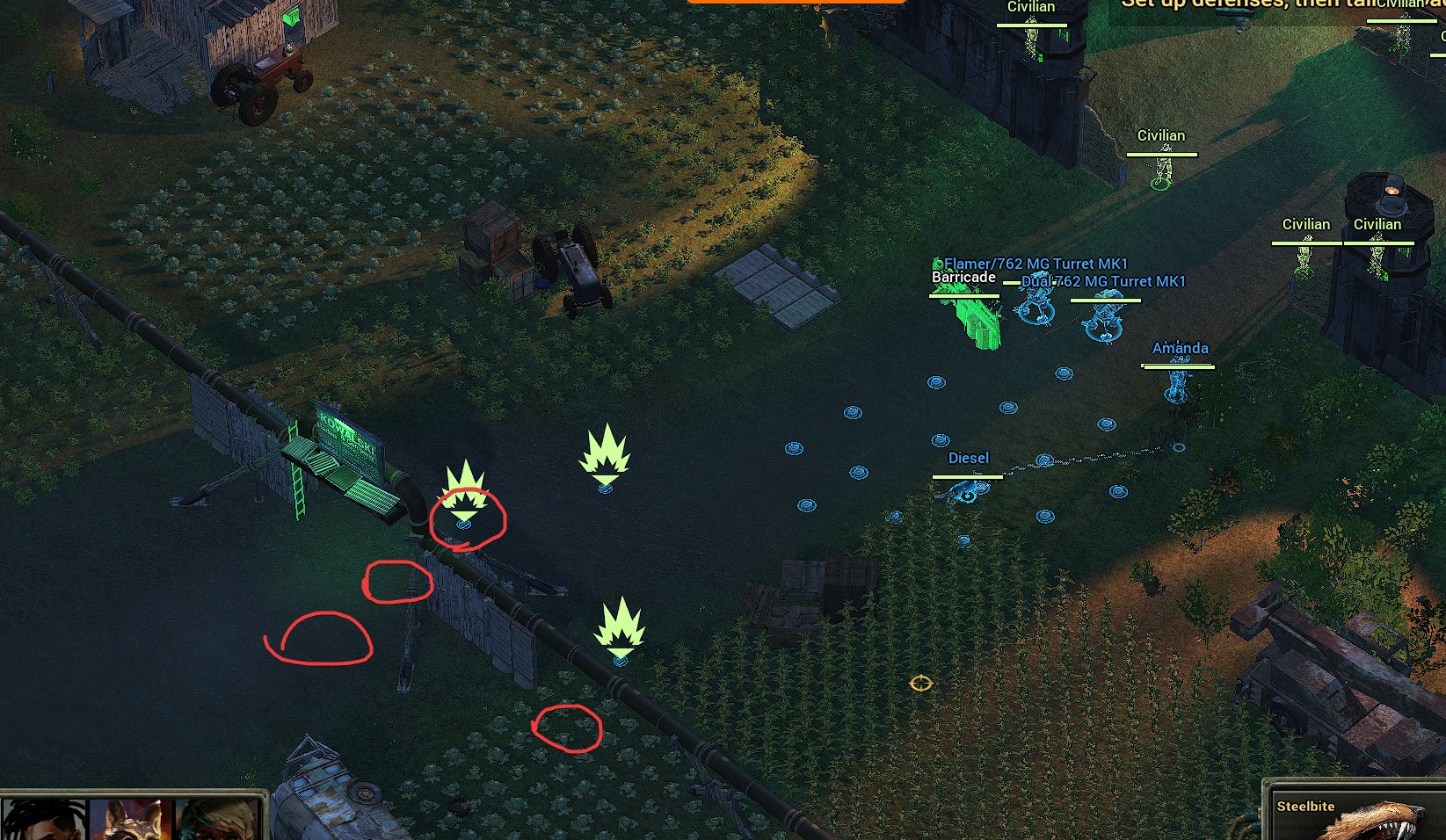 我的目标是保护农场且不损失任何平民...因此我不能躲在墙后等敌人靠近。