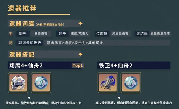 躯干:暴击伤害;鞋子:速度/攻击力;位面球:风属性伤害;连结绳:能量恢复效率